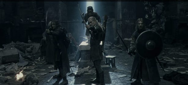 That said, I think Theoden and Boromir—excellent as they are on screen overall—both suffer in the adaptation due to the imposition of Aragorns arc from reluctant heir to confident king. The scene you mention with Narsil is just one example. Flaws of leadership in both Theoden and Boromir are drawn out as a way to show contrast with Aragorn, to in turn draw out Aragorn’s more perfect qualities as would-be king. If you remove the need for Aragorn to start believing in himself (because he already does in the books) then there’s more room for Boromir good qualities to come across before his fall, in the moments of his death, and in the ways other characters remember him.
