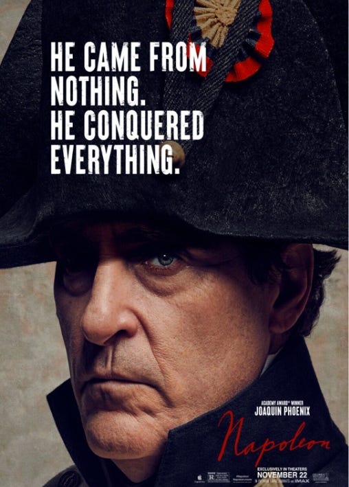 Next up is Napoleon starring Joaquin Phoenix as the famous French leader and Vanessa Kirby as his wife Josephine.